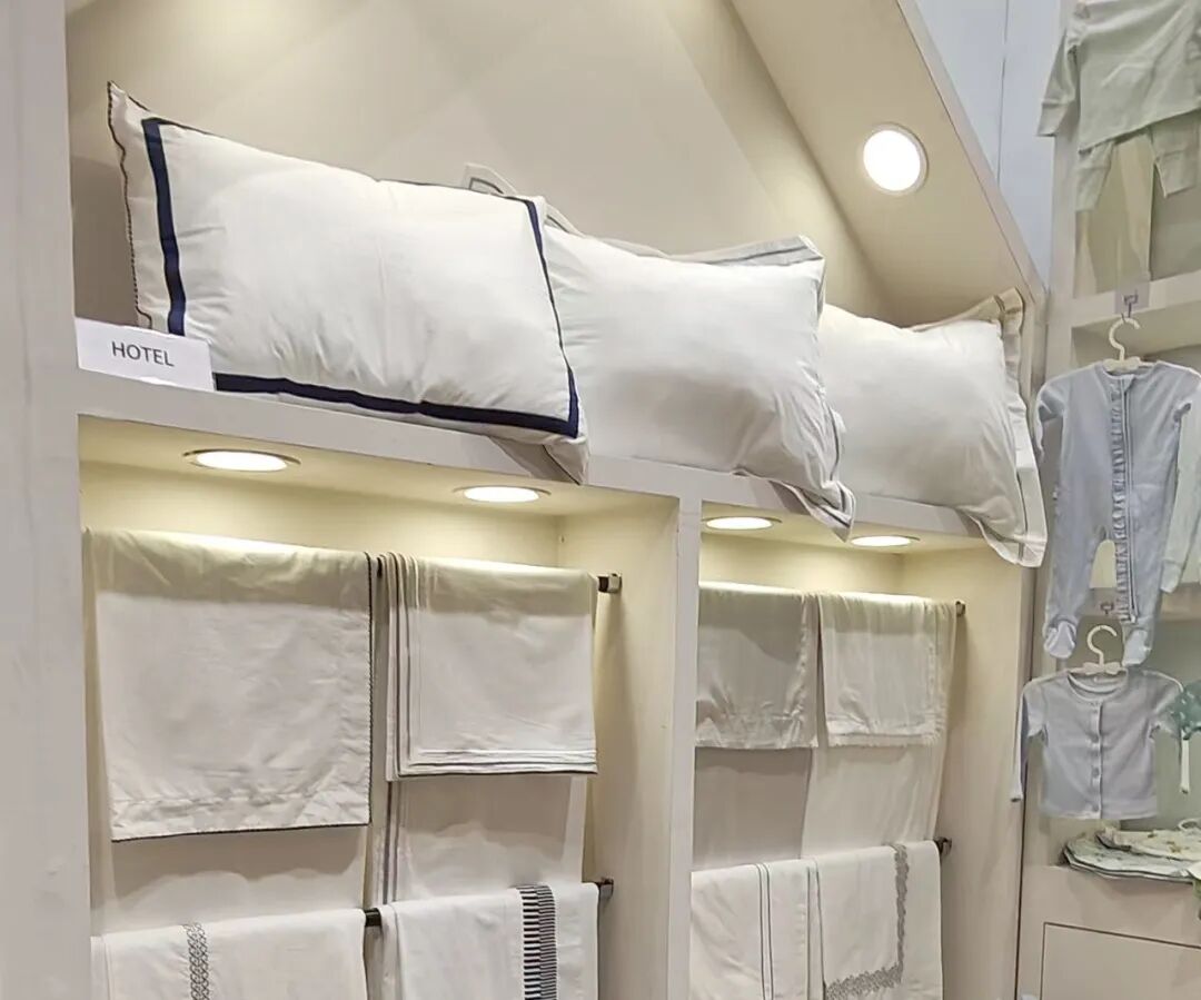 This time, Northern Home Textiles is located at booths H30-32 and I12-16 in Hall 15.2. It interprets contemporary home aesthetics through a modern and minimalist design language. The exhibition hall adopts a low-saturation color system, creating a warm and elegant spatial atmosphere through the combination of soft tones such as linen and natural wood colors. The open display walls and streamlined display racks provide a rich visual hierarchy, while the artistic partitions and structural design precisely balance the poetic display with the breathing sense of white space.